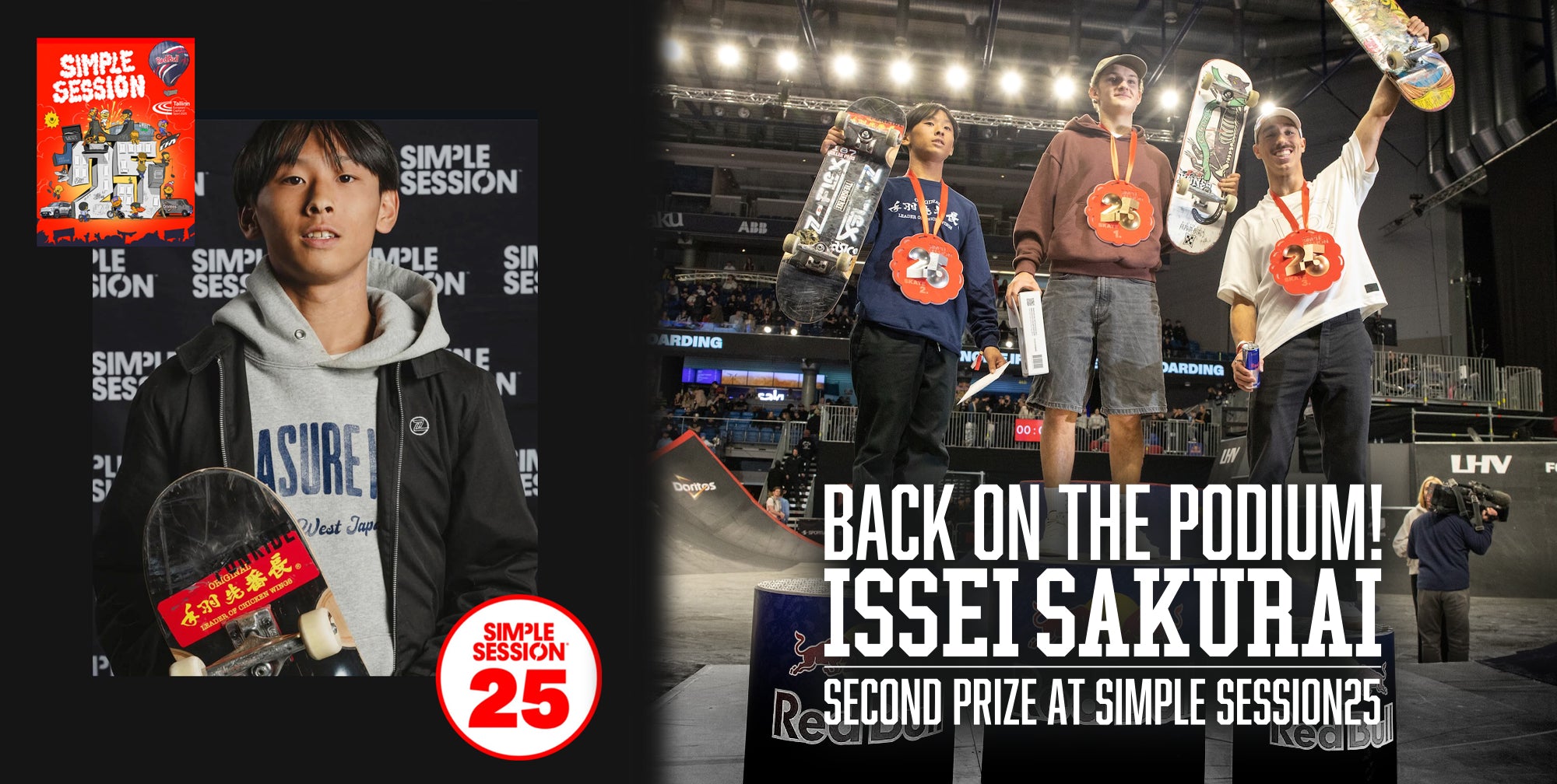 2位となったHampus Winbergは、今年3月に開催された「SIMPLE SESSION 25」でも優勝を争った相手。今回はHampus自らが設計したホームパークでの開催という不利な状況ながら、0.34ポイント差と前回よりさらに迫り、確かな実力を示した。